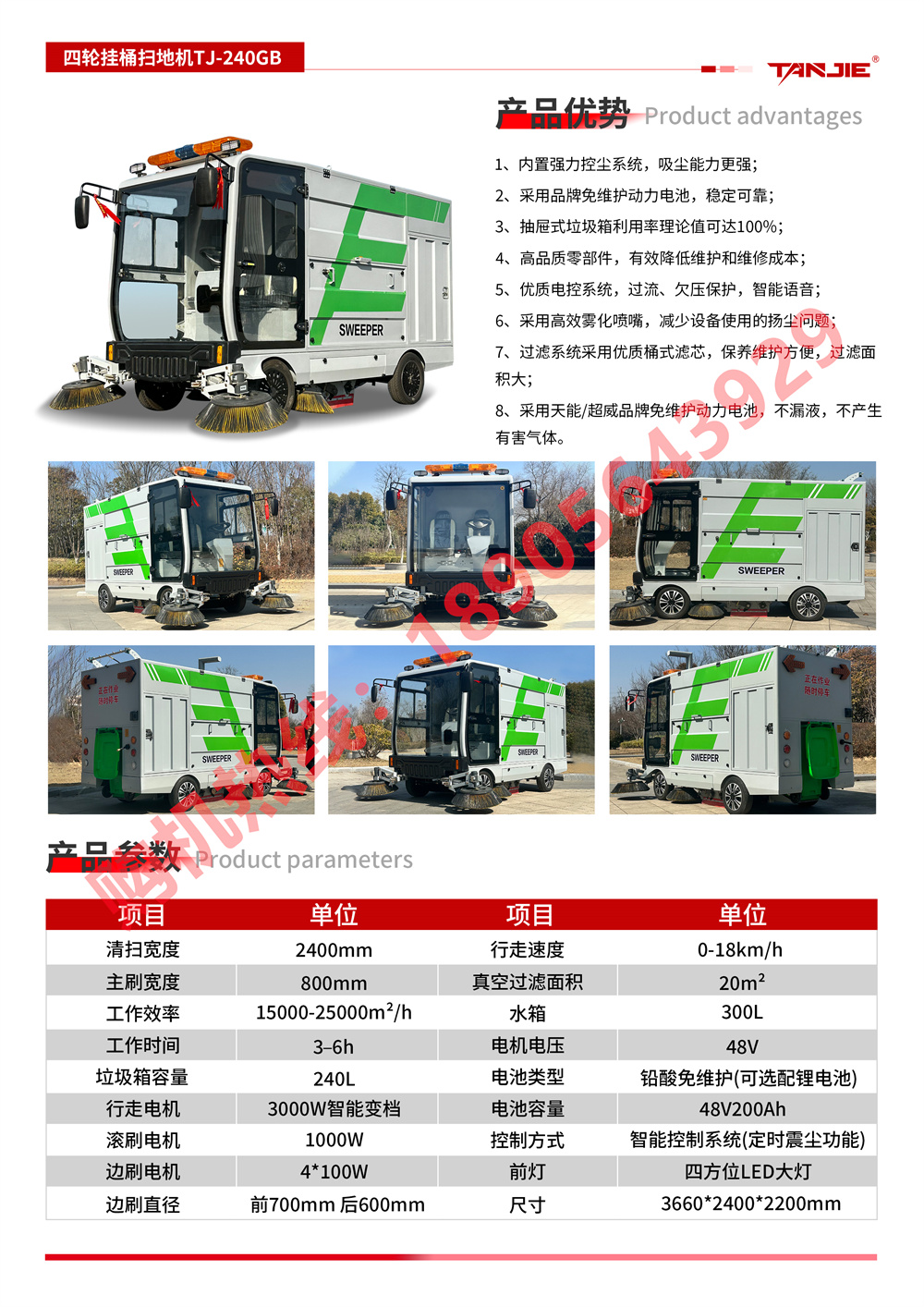 上饶坦洁四轮挂桶扫地车TJ-240GT