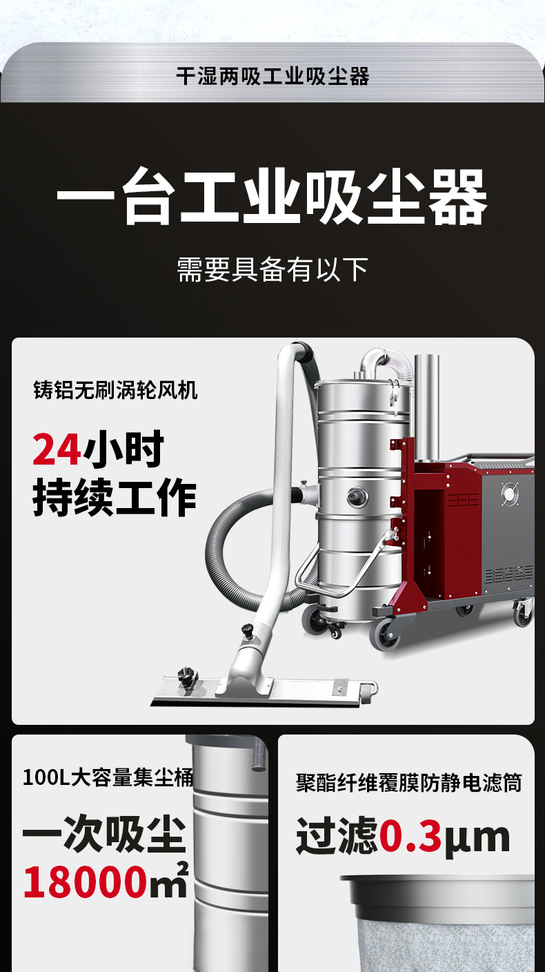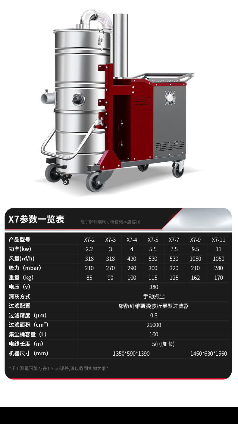 上饶坦洁380V双桶不锈钢工业吸尘器X7系列